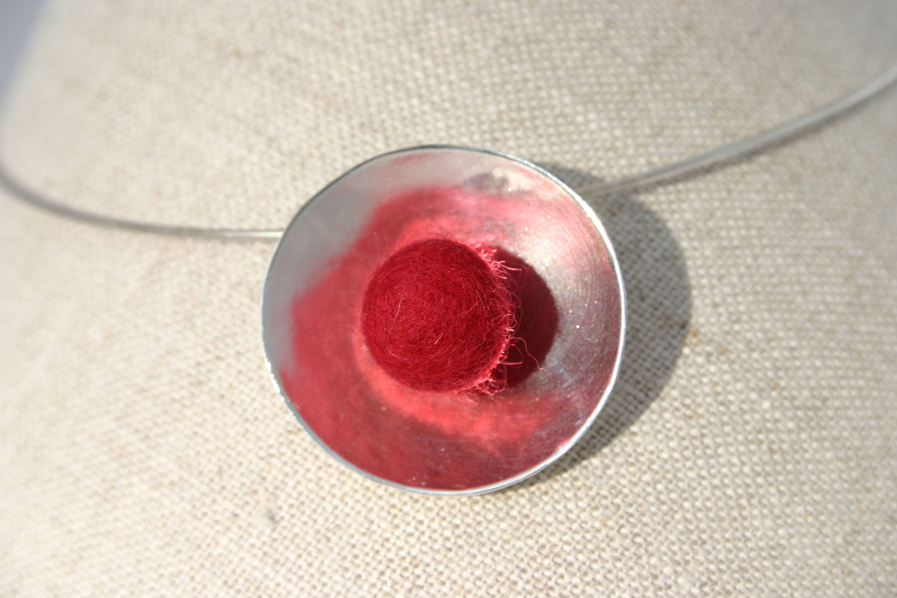 This fine silver ring (.999FS hallmark) with its hand- sculpted and polished finish was designed to enhance and reflect the natural beauty and luster of this hand felted “pearl”; making this “pearl” as precious as any of its ocean counterparts.