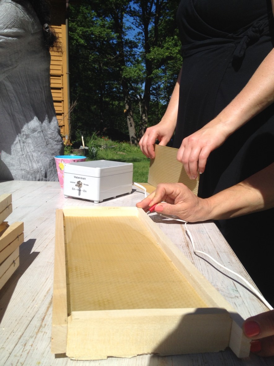 connecting the electrodes to heat the wire and melt the wax