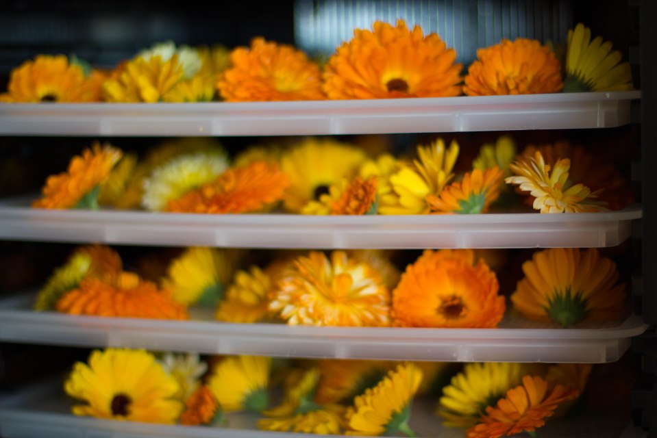 October 15, 2014 tubtea (4 of 13) in the dehydrator set to RAW temps so as not to over heat the flowers