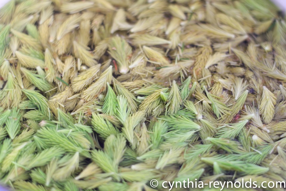 as the tips cook, they turn from vibrant green to a pink/brown